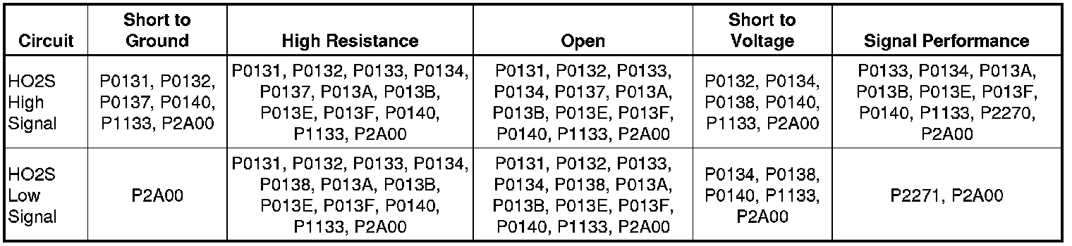 * DTCs P0133, P0134, P013E, P013F, P0140, P1133, P2270, P2271, P2A00 are Type B DTCs.