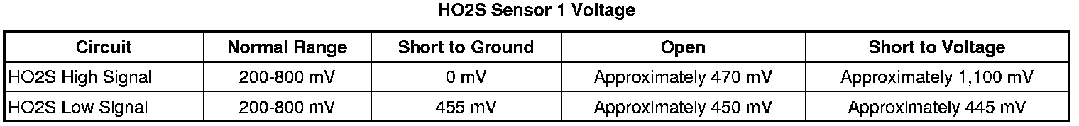 * The ECM detects that the HO2S 1 parameter is between 400-500 mV for 100 seconds.