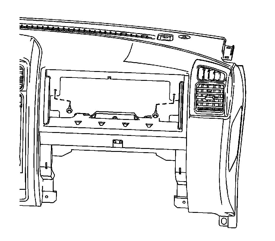 6. Remove the lower center I/P extension. Refer to Instrument Panel Lower Center Trim Replacement Instrument Panel Lower Center Trim Replacement.