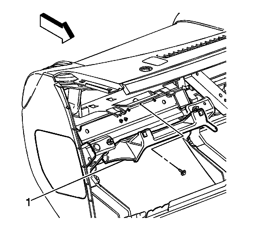 12. Pull the I/P compartment folding panel (1) down and rearward to reveal the screw installation area.