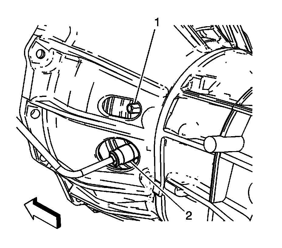 3. Install the 2 transmission mounting bolts (2) and tighten to 50 Nm (37 lb ft).