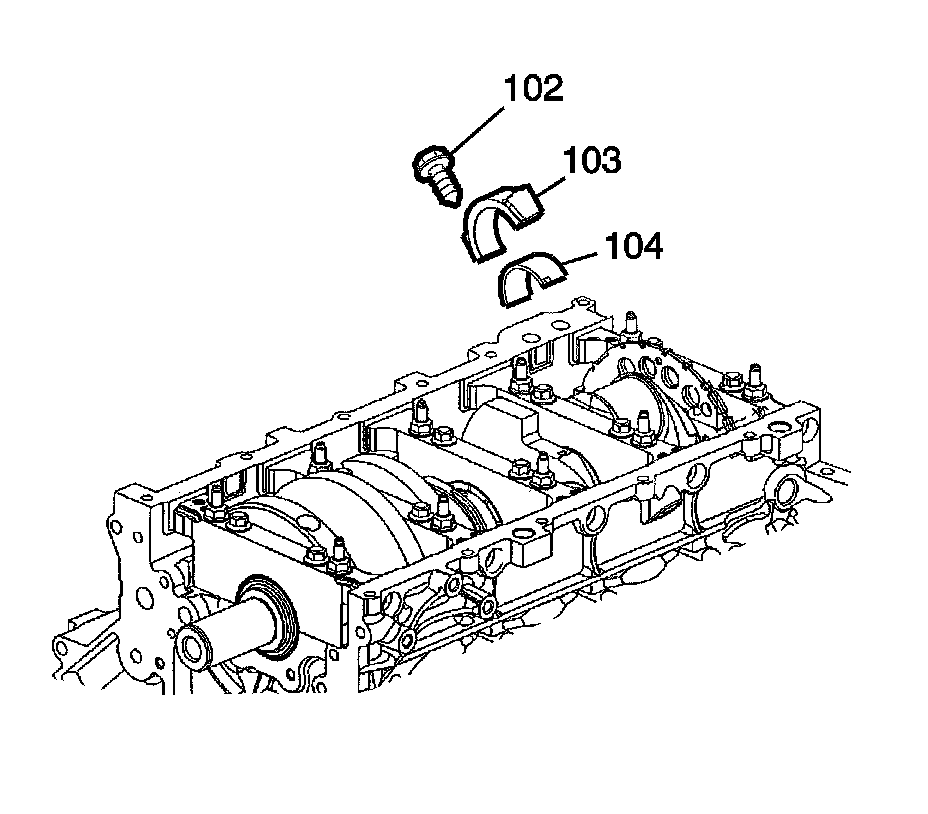 3. Remove the connecting rod bolts (102), cap (103) and bearing (104).