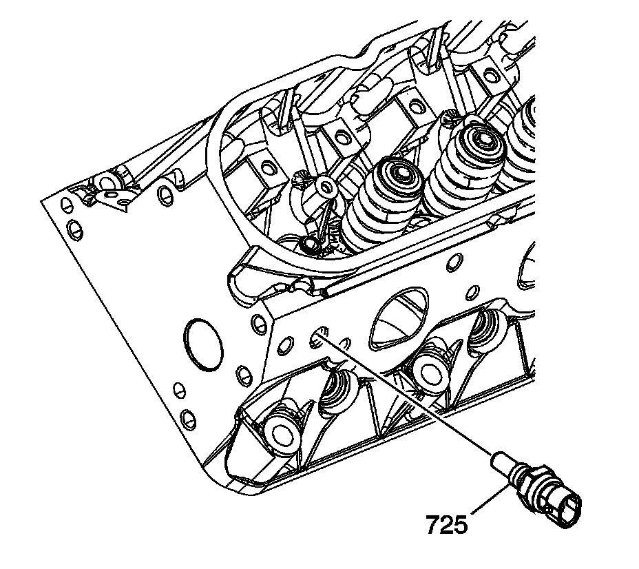 9. Remove the coolant temperature sensor (725) from the left cylinder head.