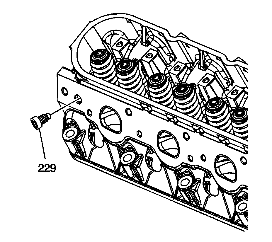 10. Remove the cylinder head plug (229) from the right cylinder head.