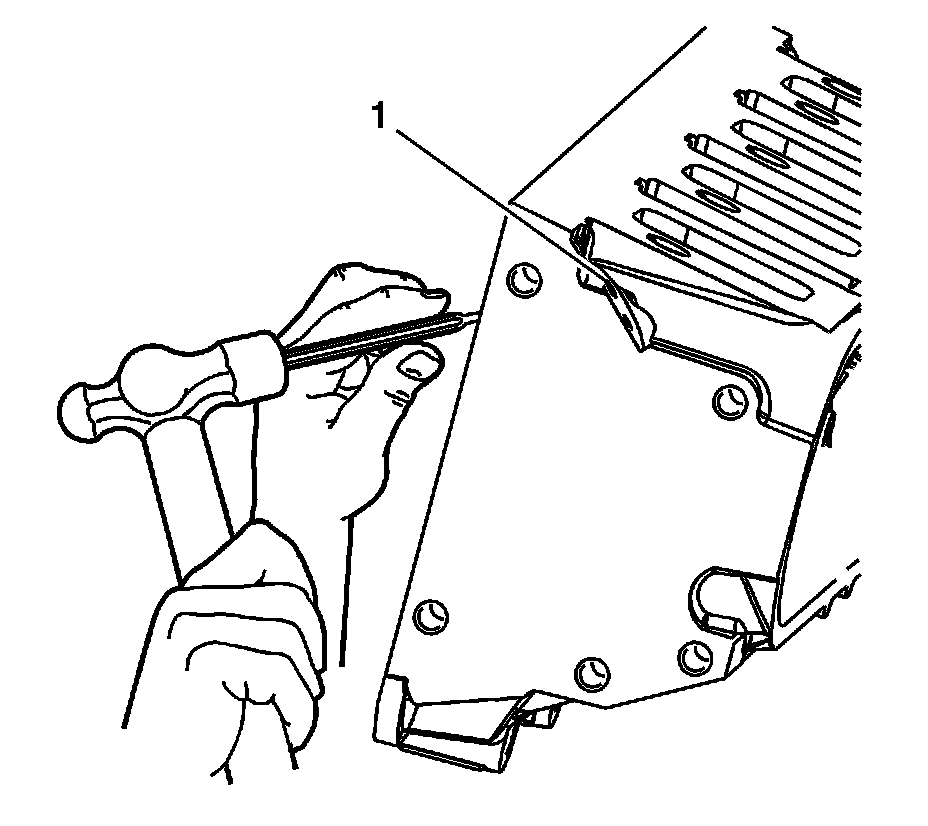 12. Using a 6.43 mm (0.25 in) or smaller punch, remove the plug assembly (1) from the cylinder head.