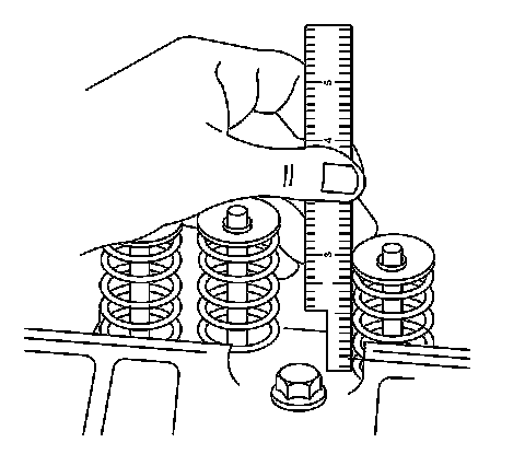 Measure from the base of the valve spring to the top of the valve spring. If the spring installed height is not within specification, the valve and/or cylinder head must be replaced. Refer to Engine Mechanical Specifications Service Limits & General Specifications
