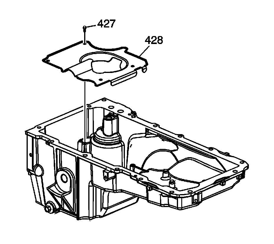 12. Tighten the oil pan baffle bolts (427) to 9 Nm (80 lb in).