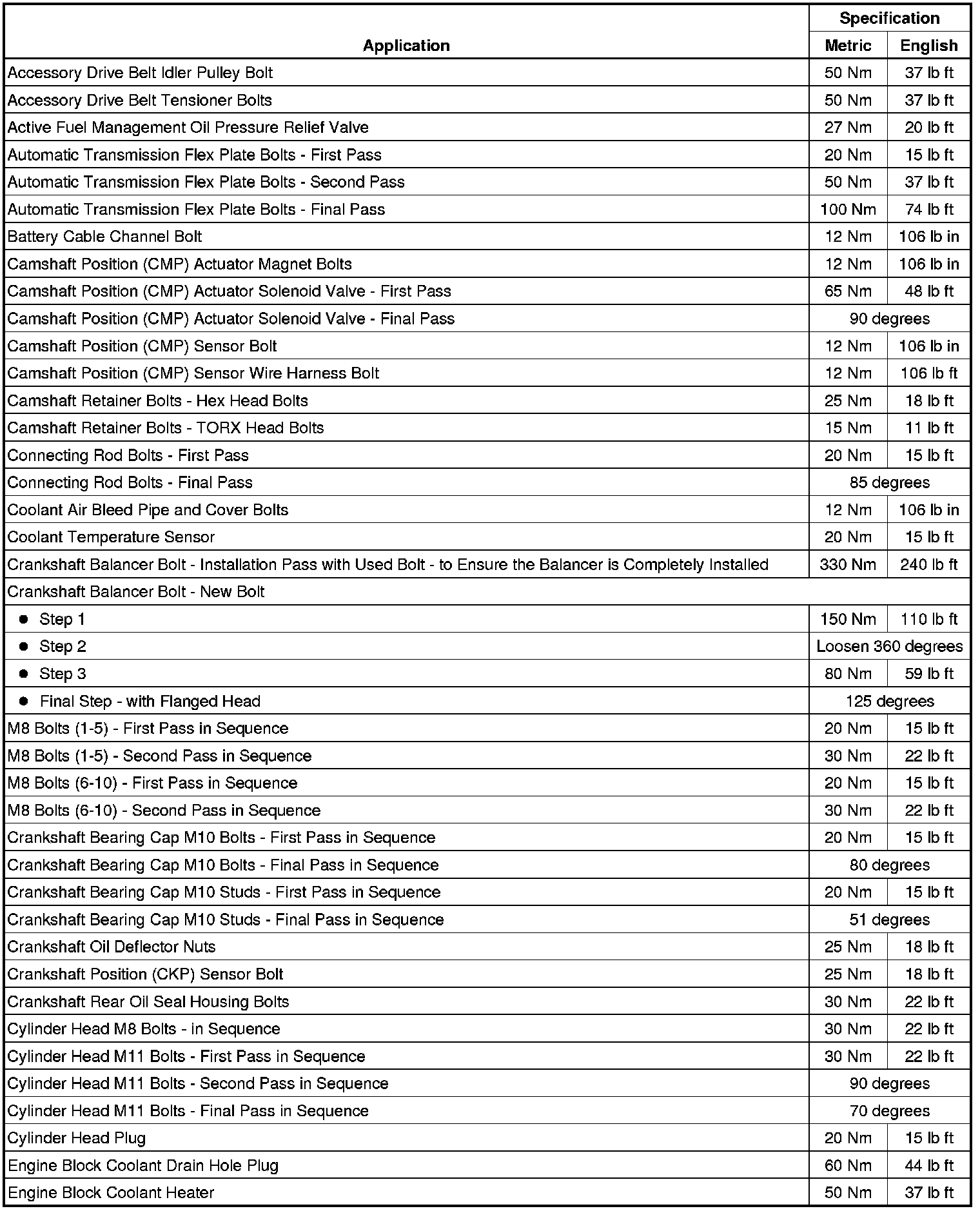 Fastener Tightening Specifications