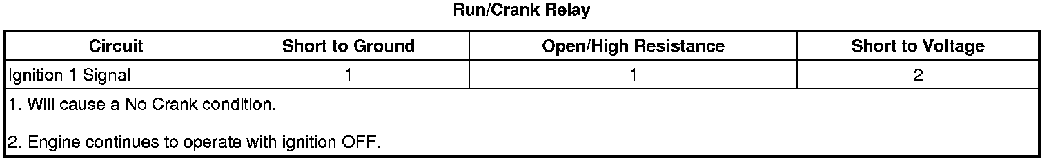 There are 2 ignition voltage circuits supplied to the engine control module (ECM). One is supplied by the powertrain relay and the other is supplied by the Run/Crank relay. The ECM monitors and compares the ignition voltage supplied by the 2 relays.