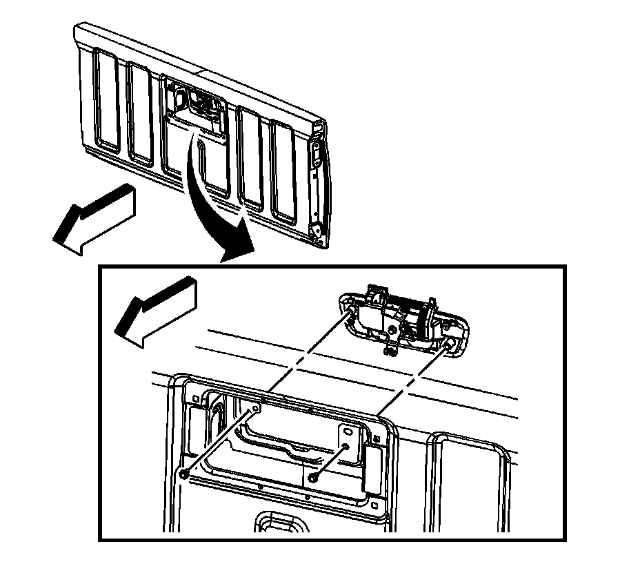 1. Install the lock cylinder to the endgate handle if equipped. Refer to Endgate Lock Cylinder Replacement Endgate Lock Cylinder Replacement.
