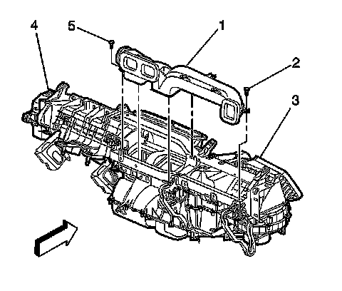 1. Install the air distributor duct (1) to the instrument panel.