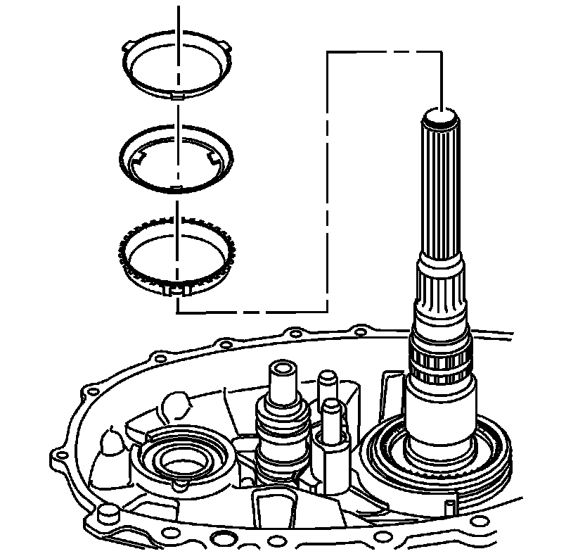57. Install the 2/4 synchronizer blocking ring. Align the tabs on the ring with the insert grooves on the synchronizer hub.
