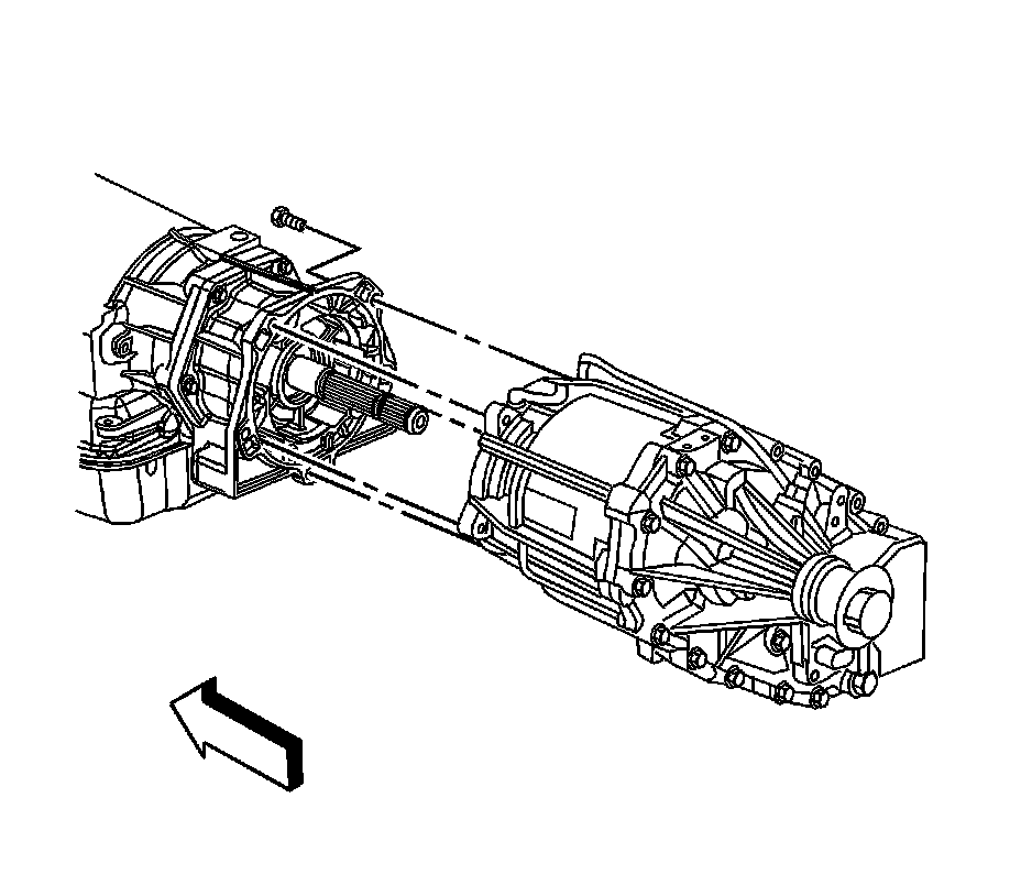 2. With the aid of an assistant, carefully raise the transfer case to the manual transmission, aligning the splines.