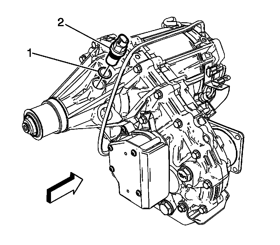 3. Remove the transfer case speed sensor (2) and O-ring seal (1) from the transfer case.