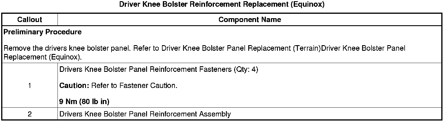 Driver Knee Bolster Reinforcement Replacement (Equinox)