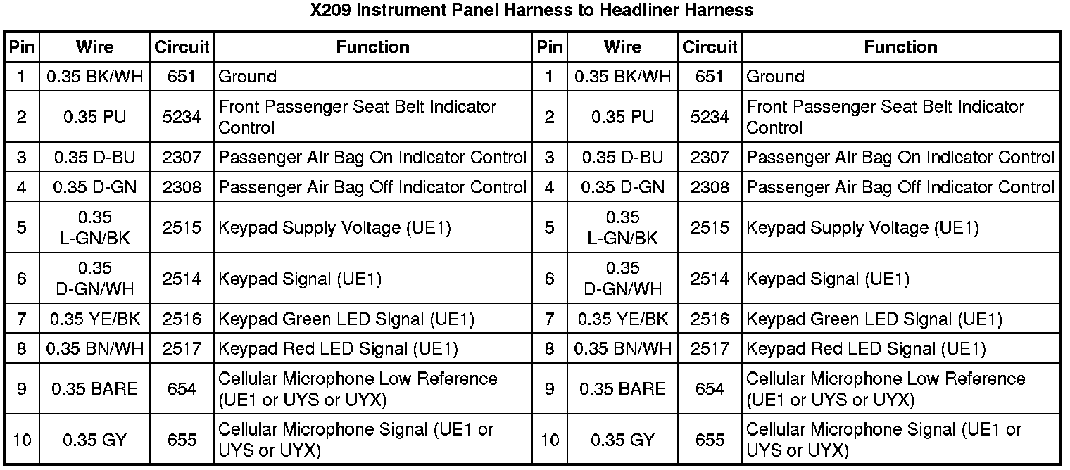 X209 Instrument Panel Harness to