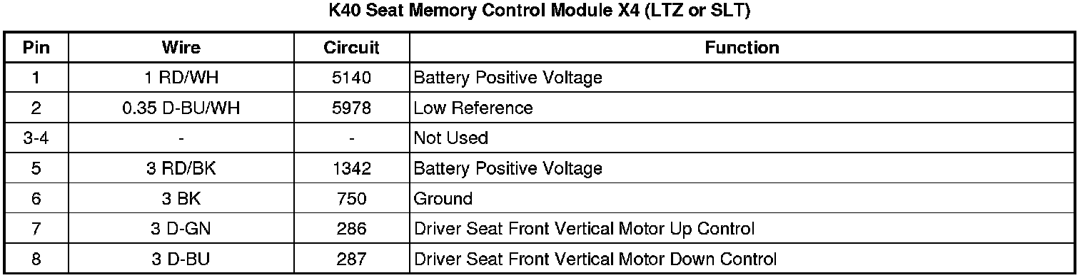 K40 Seat Memory Control Module X4 (LTZ or SLT)