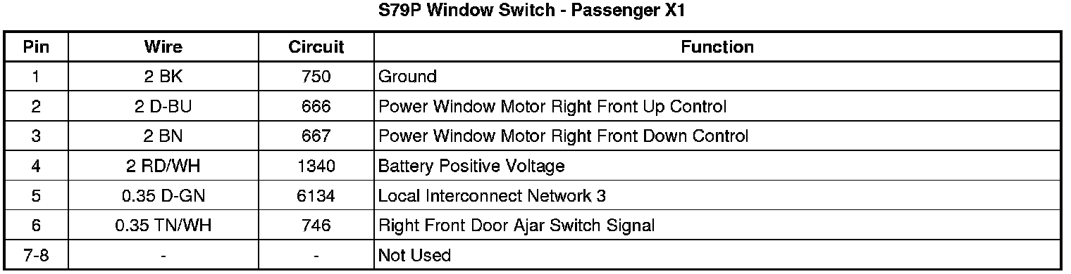 S79P Window Switch - Passenger X1
