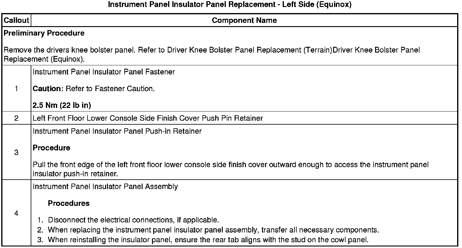 Instrument Panel Insulator Panel Replacement - Left Side (Equinox)
