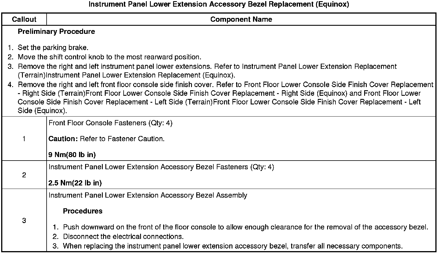 Instrument Panel Lower Extension Accessory Bezel Replacement (Equinox)