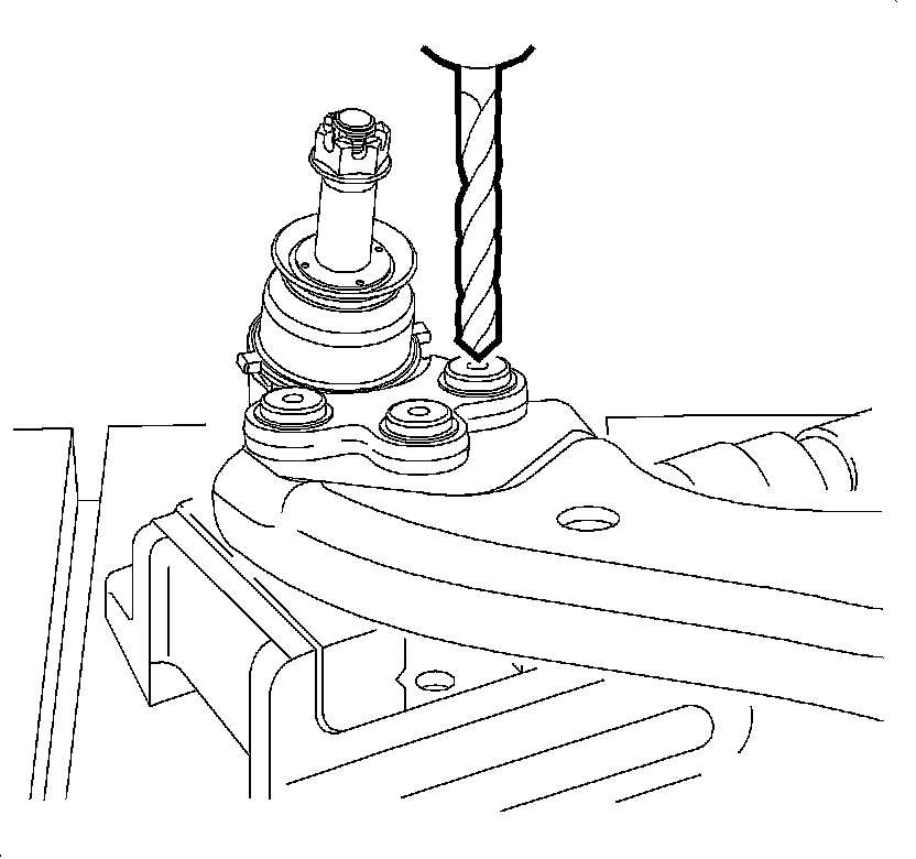 3. Remove the ball joint rivets using the following procedure.