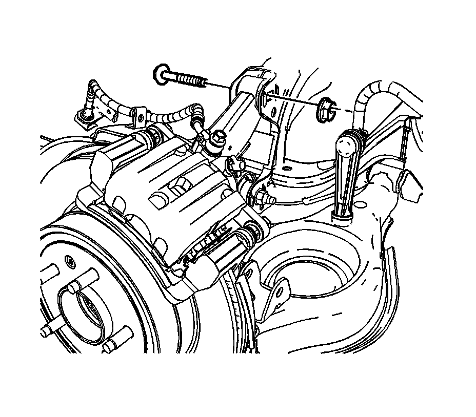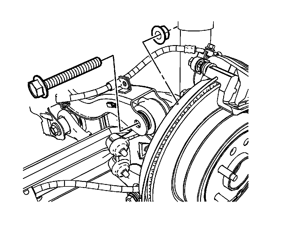 * The rear brake hose bracket must be installed on the side of the upper control arm bracket closest to the front of the vehicle. The rear brake hose bracket must be installed parallel to the upper control arm.