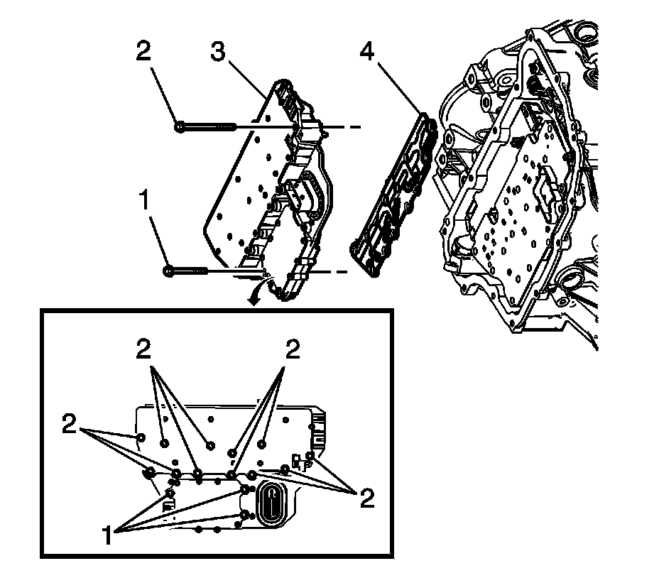 1. Remove the transmission control valve body cover. Refer to Control Valve Body Cover Replacement Control Valve Body Cover Replacement.