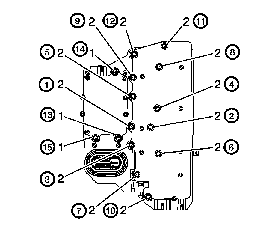 9. Install the transmission control valve body cover. Refer to Control Valve Body Cover Replacement Control Valve Body Cover Replacement.