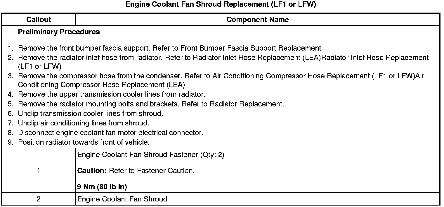 Engine Coolant Fan Shroud Replacement (LF1 or LFW)