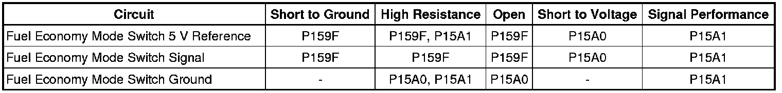 The ECM detects that the voltage on the fuel economy mode switch signal wire is either too low or too high out of range.