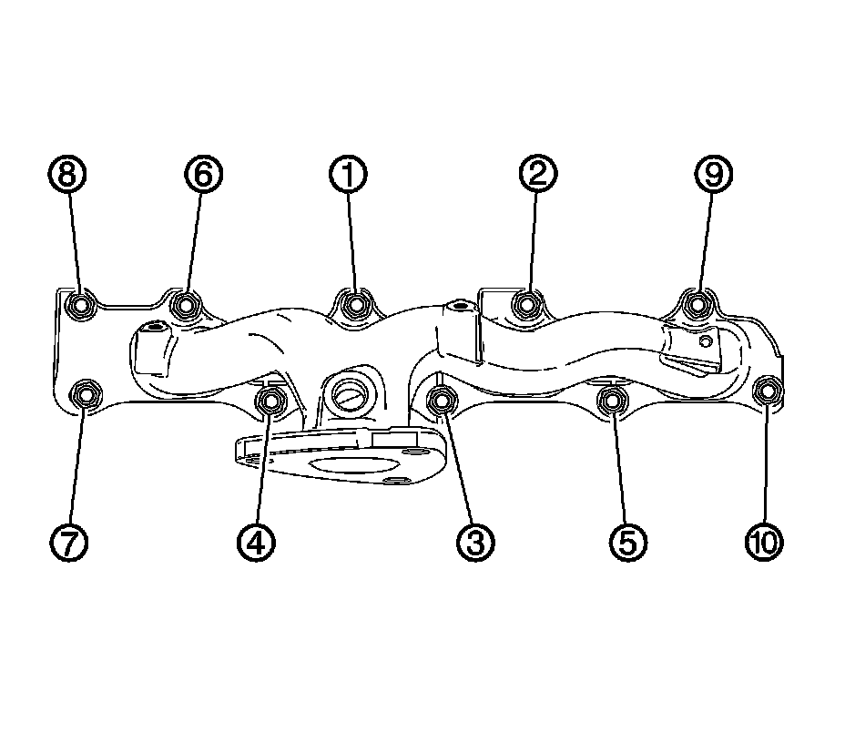 7. Tighten the NEW exhaust manifold to cylinder head retaining nuts two passes in sequence:
