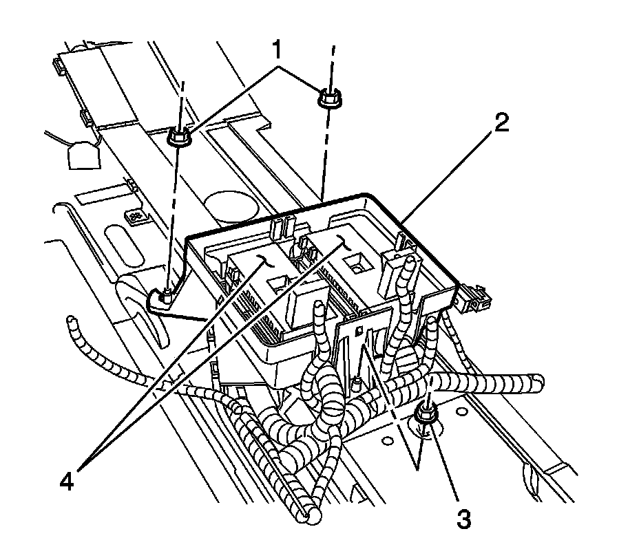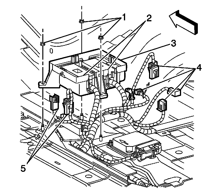 12. Remove the junction block base (4) from the floor.