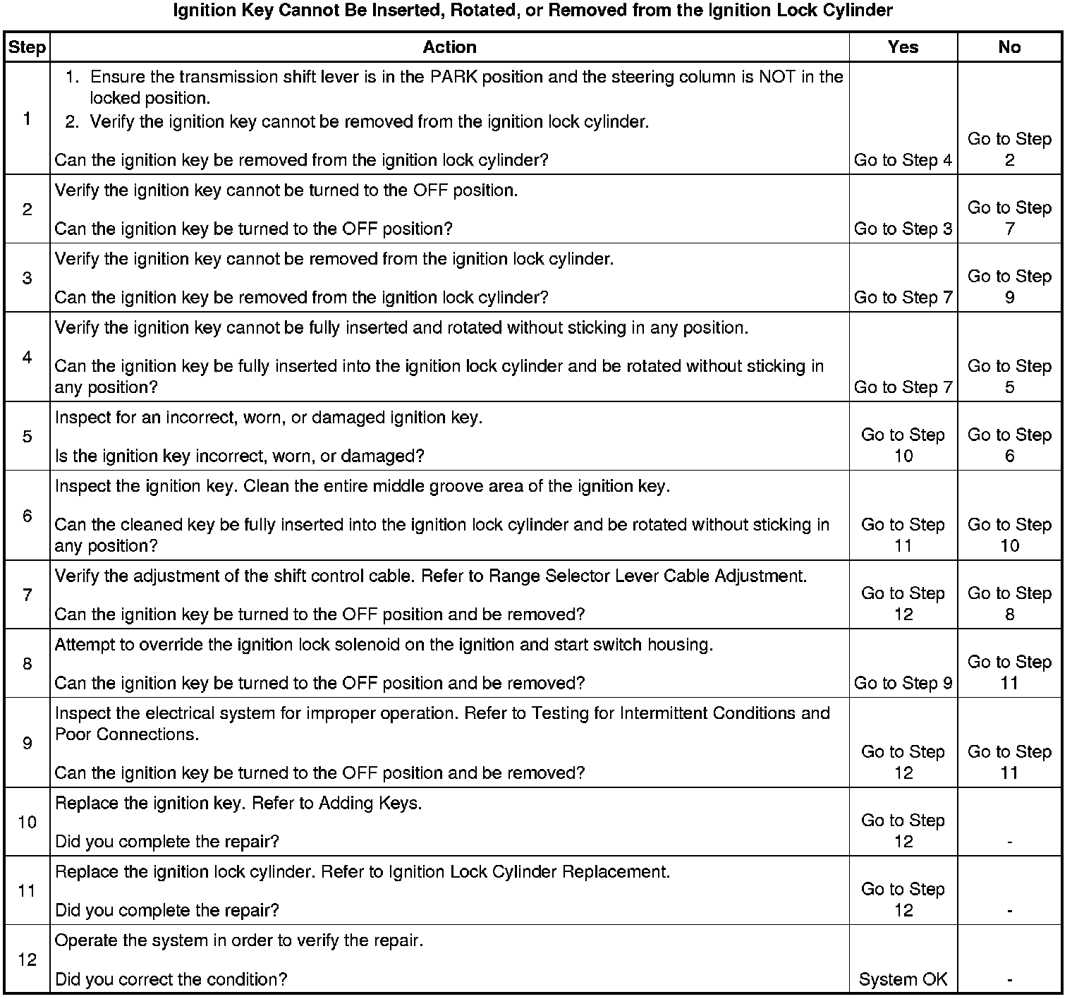 Cannot Be Inserted, Rotated, or Removed from the Ignition Lock Cylinder
