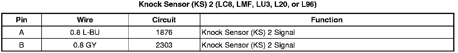 Knock Sensor (KS) 2 (LC8, LMF, LU3, L20, or L96)