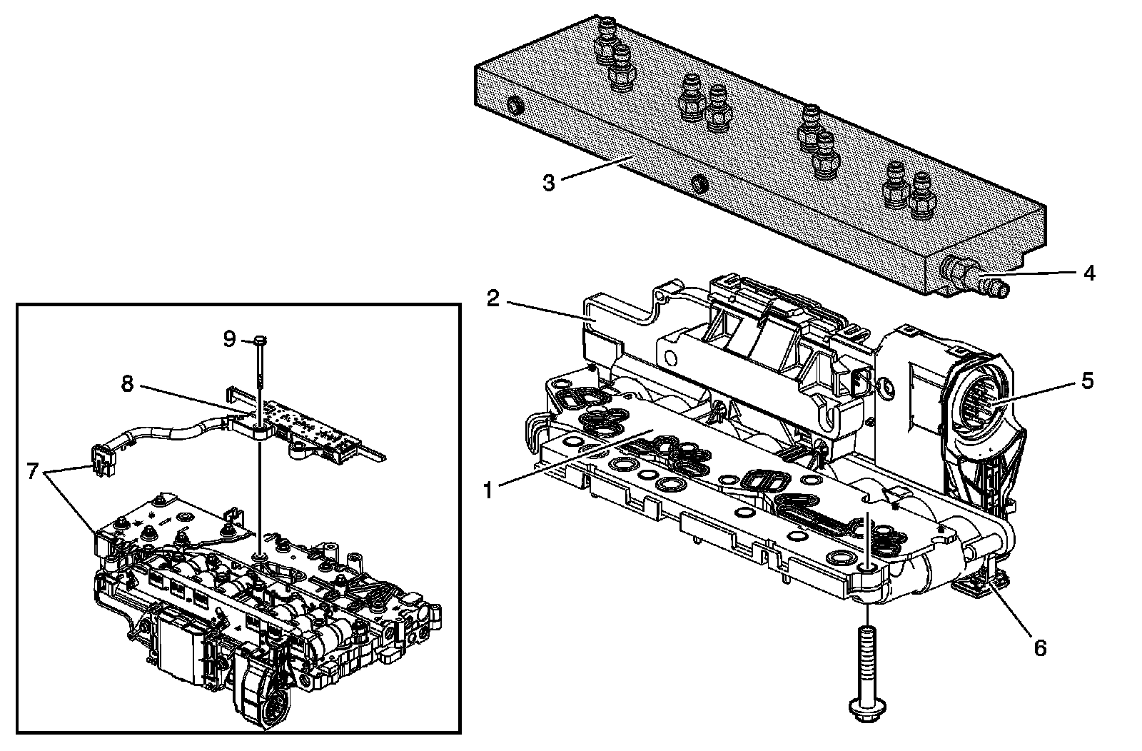 4. Remove the control solenoid valve assembly from the transmission. Refer to Control Valve Lower Body and Upper Body Replacement Control Valve Lower Body and Upper Body Replacement.