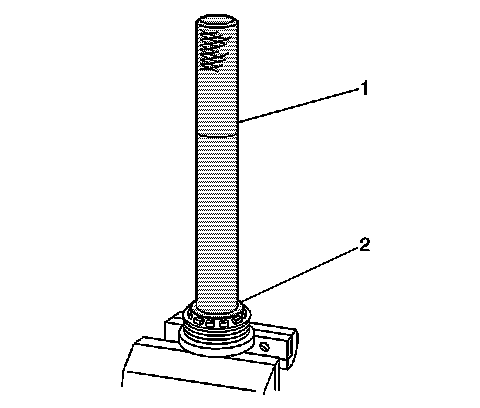 7. Install the J 45850-2 (2), J 45850-3 (1), the forcing screw, bearing, washers and nuts (1) over the upper inner shaft housing bushing as shown.