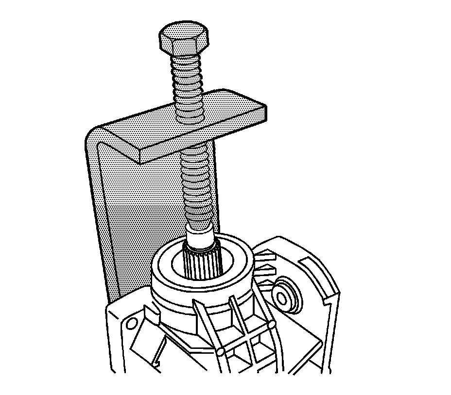 36. Remove the drive pinion by turning the forcing screw of the J 45234 clockwise.