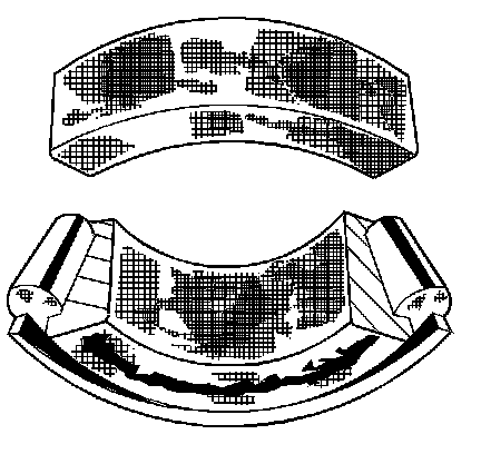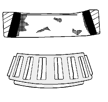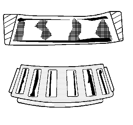 Wear around the outside diameter of the cage and the roller pockets caused by abrasive material. Wear caused from inefficient lubrication. Clean the related parts and the housings. Check the seals. Replace the bearings.