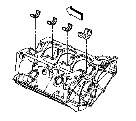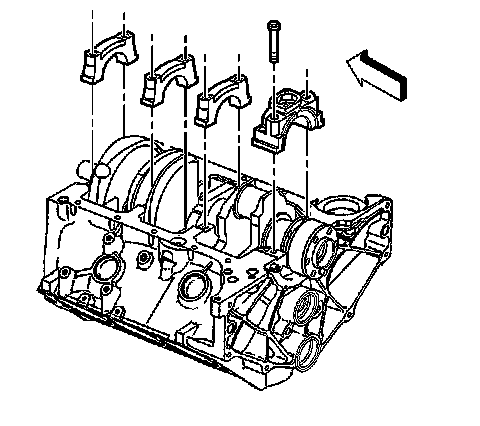 7. Install the crankshaft bearing caps in the original position and with the arrow on the crankshaft bearing caps in the direction of the front of the engine block.