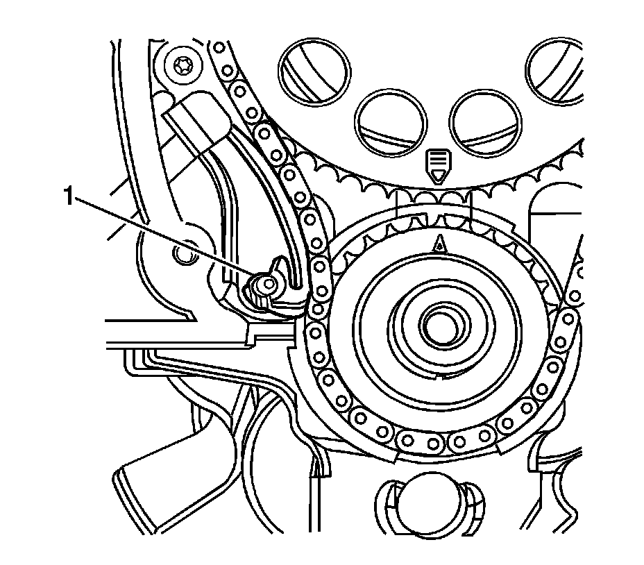 4. Unsnap the timing chain tensioner shoe from the pin (1).