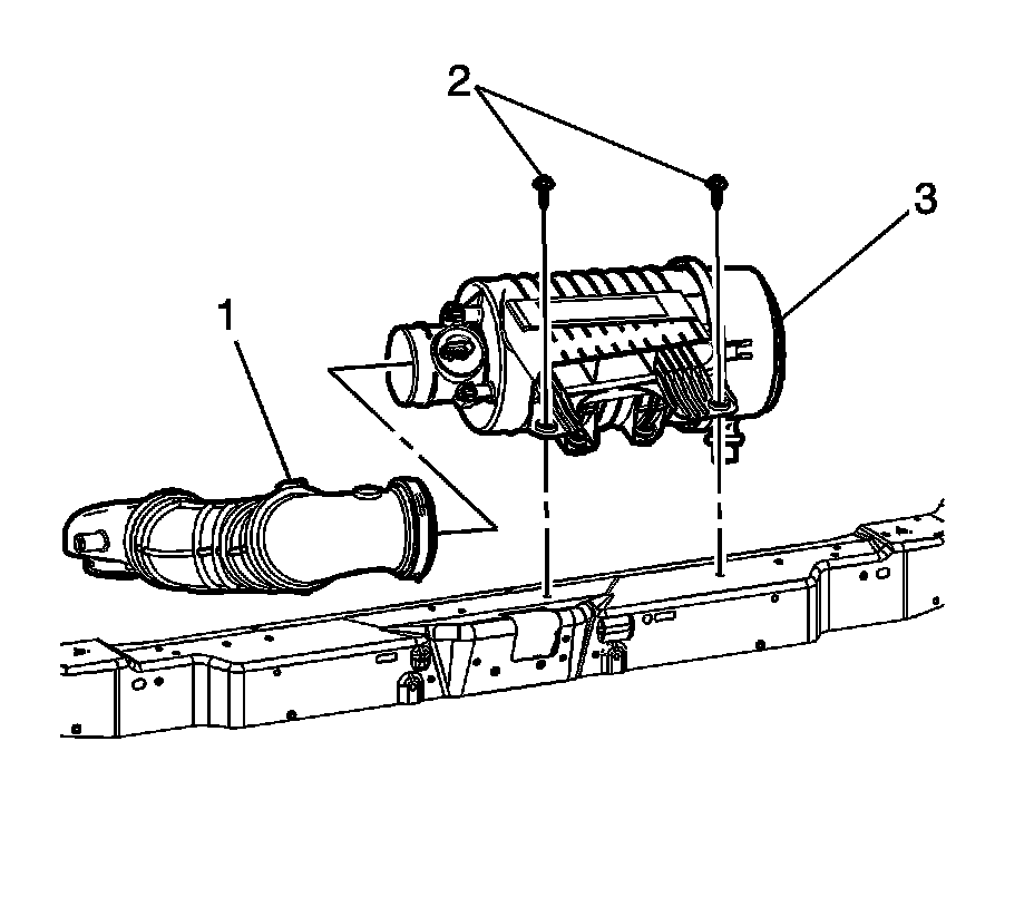 2. Install the air cleaner assembly bolts (2) and tighten to 11 Nm (97 lb in).