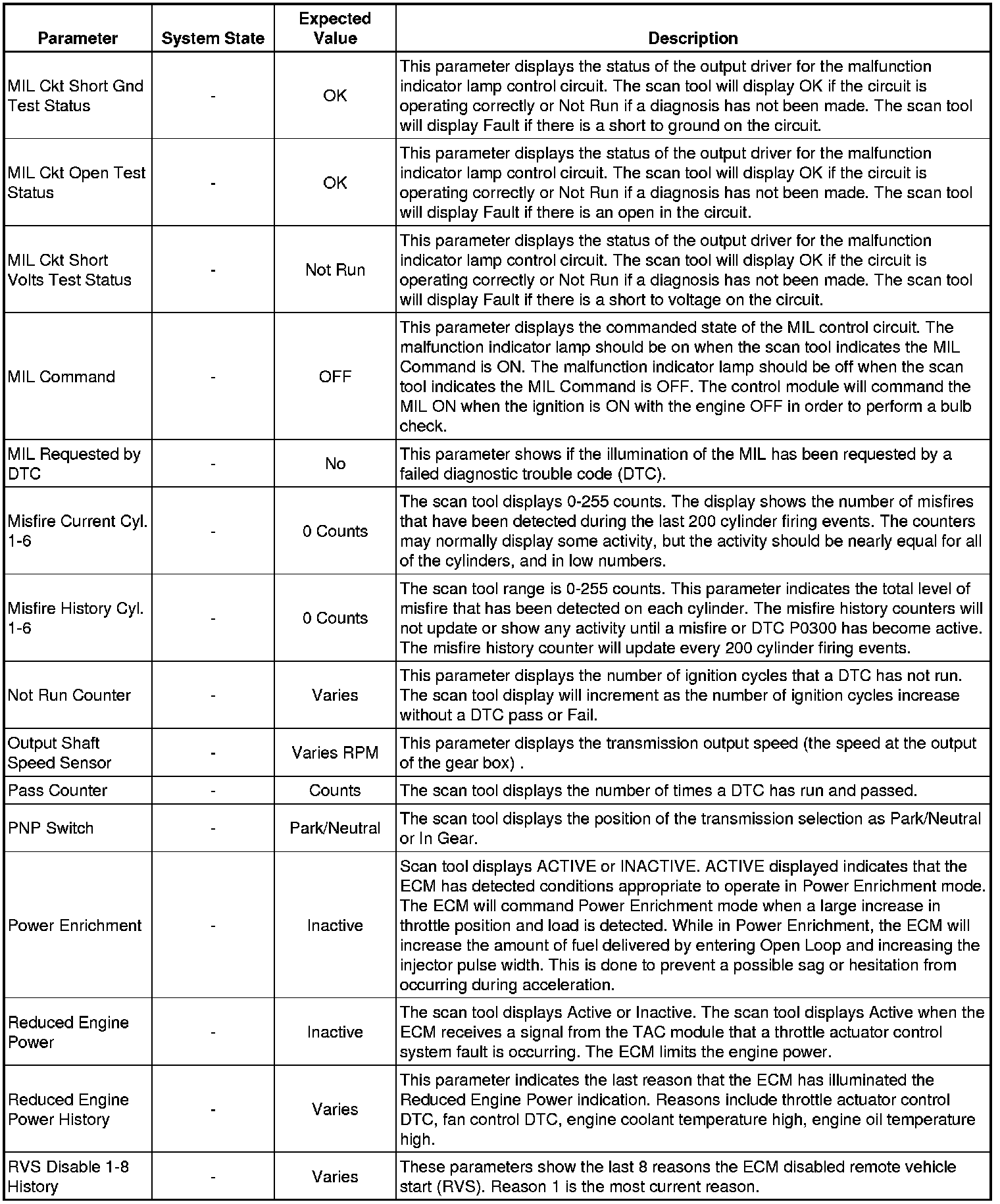 The Engine Control Module (ECM) Scan Tool Data List contains all ECM related parameters that are available on the scan tool. The list is arranged in alphabetical order. A given parameter may appear in any one of the data lists, and in some cases may appear more than once, or in more than one data list, in order to group certain related parameters together.