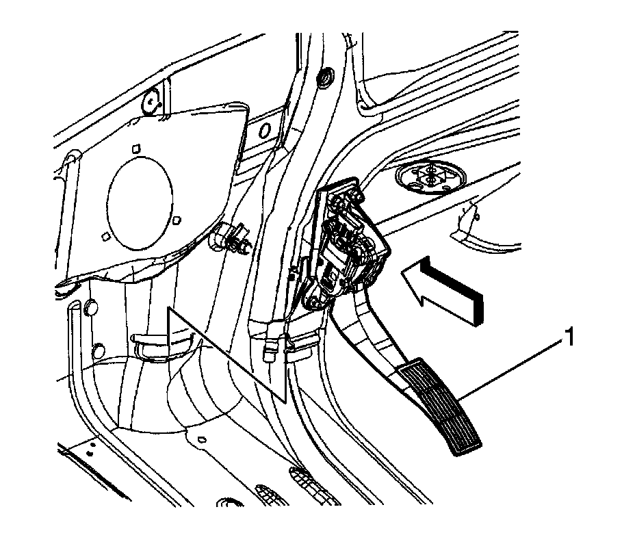 4. Remove the accelerator pedal assembly (1) from the dash panel.