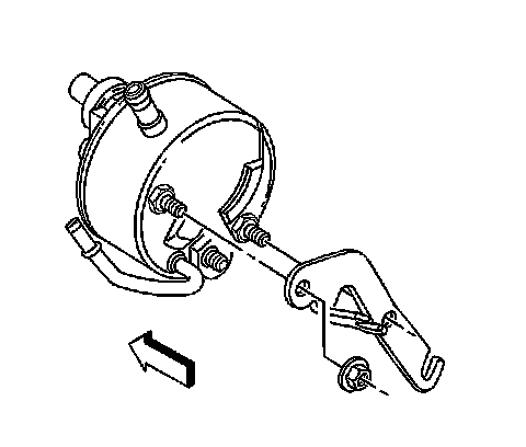 7. Connect the power brake booster inlet hose (2) to the power steering pump through the wheel well and tighten 34 Nm (25 lb ft).