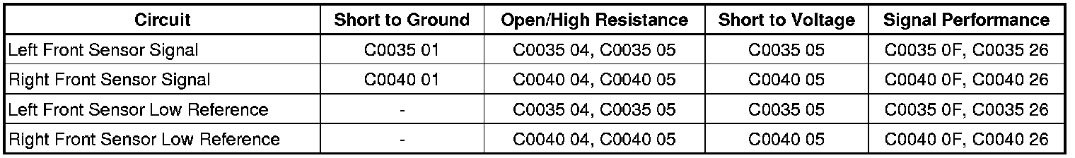 DTC C0035 or C0040 (Without StabiliTrak)