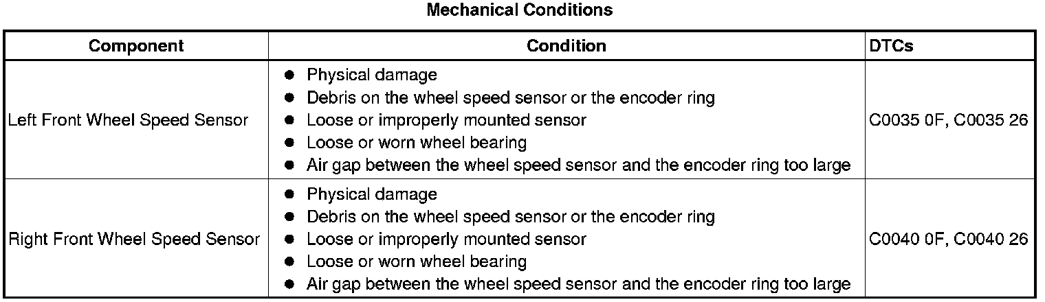 Left Front Wheel Speed Sensor Circuit Signal Erratic