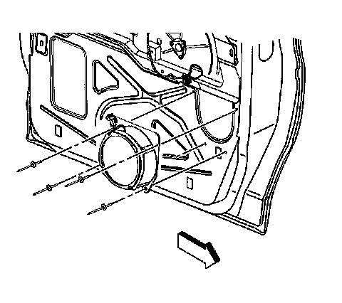 1. Remove the front door trim panel. Refer to Front Side Door Trim Panel Replacement Front Side Door Trim Panel Replacement.