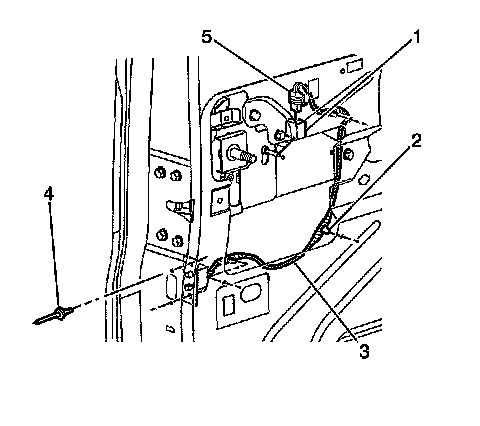 2. Disconnect the electrical connector (5) from the sliding side door lock (1).