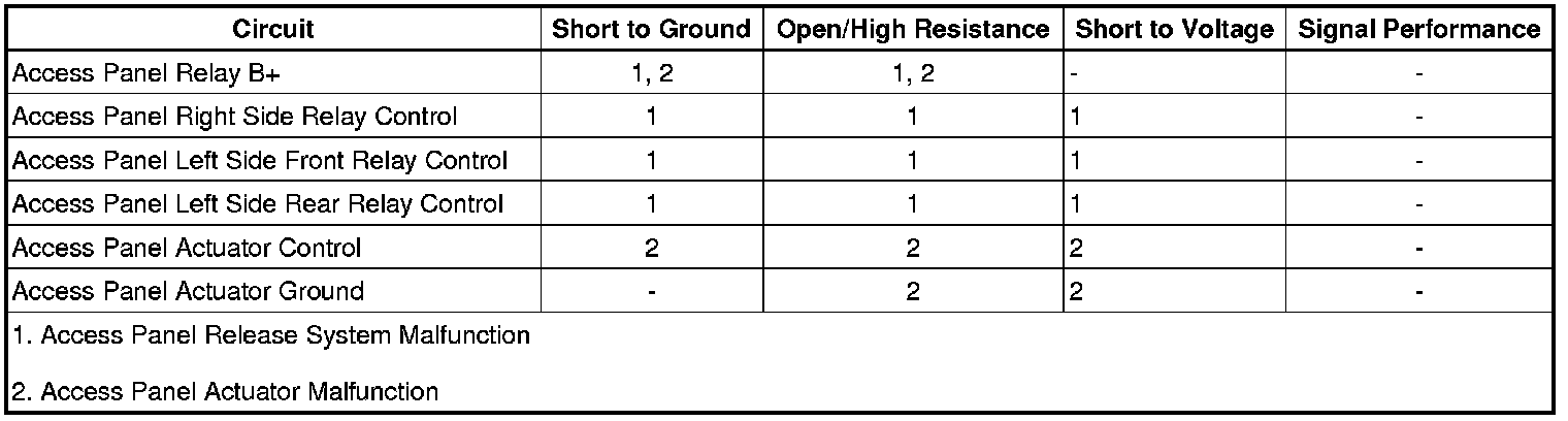 • If the access panel actuators fails to activate, refer to Keyless Entry System Malfunction Keyless Entry System Malfunction.