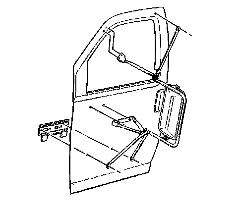 2. Remove the nuts that retain the commercial outside rearview mirror braces to the door.